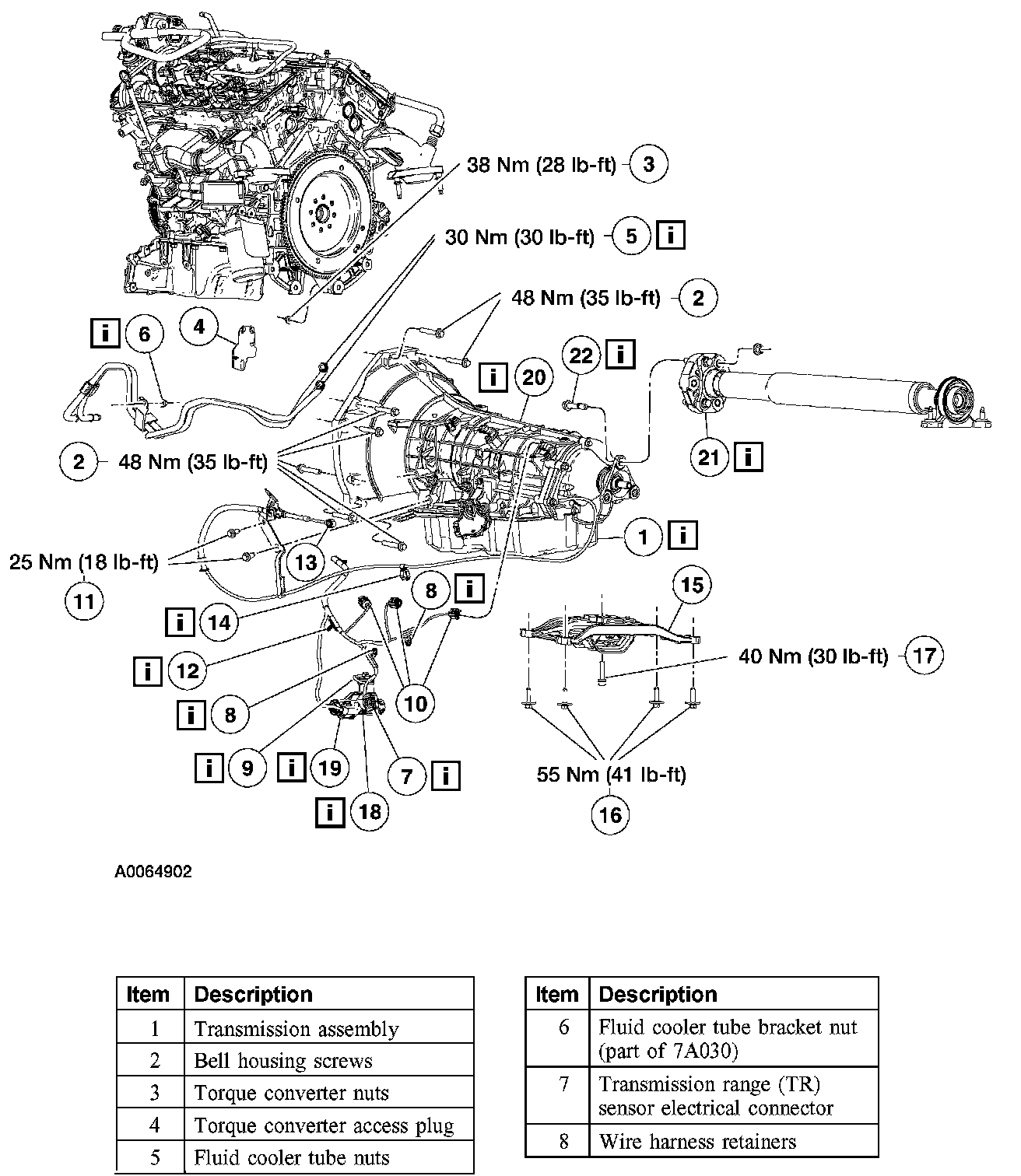 7. Check the operation of the transmission and inspect for leaks.