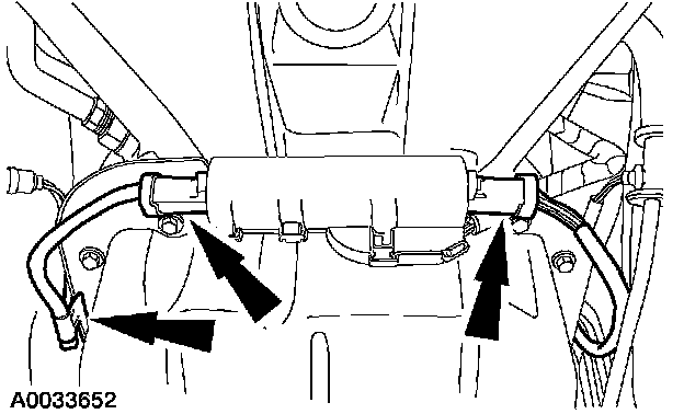 1. Reconnect the heated oxygen sensor connectors and install the sensor wire retaining clip to the right side of the transmission pan rail.