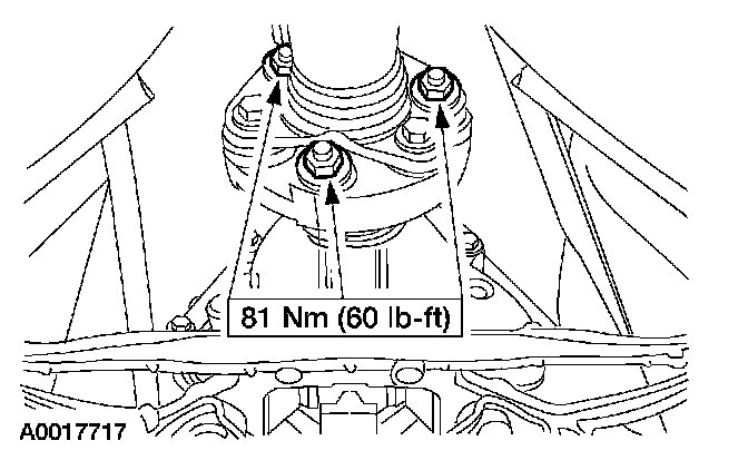 1. CAUTION: Install the bolts, washers, and nuts in their original position or driveshaft imbalance can occur. Install the driveshaft flex coupling bolts with the head of the bolt seated against the flange, and the nuts seated against the flex coupling.