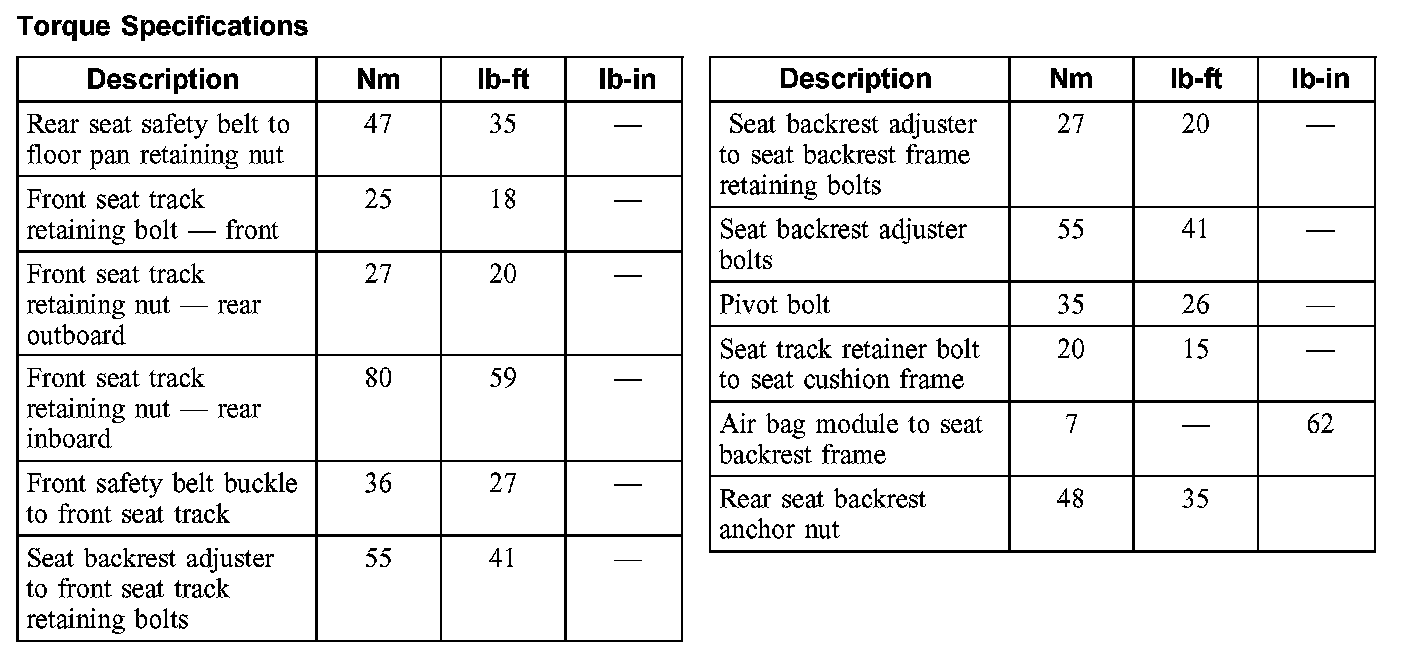 Torque Specifications:
