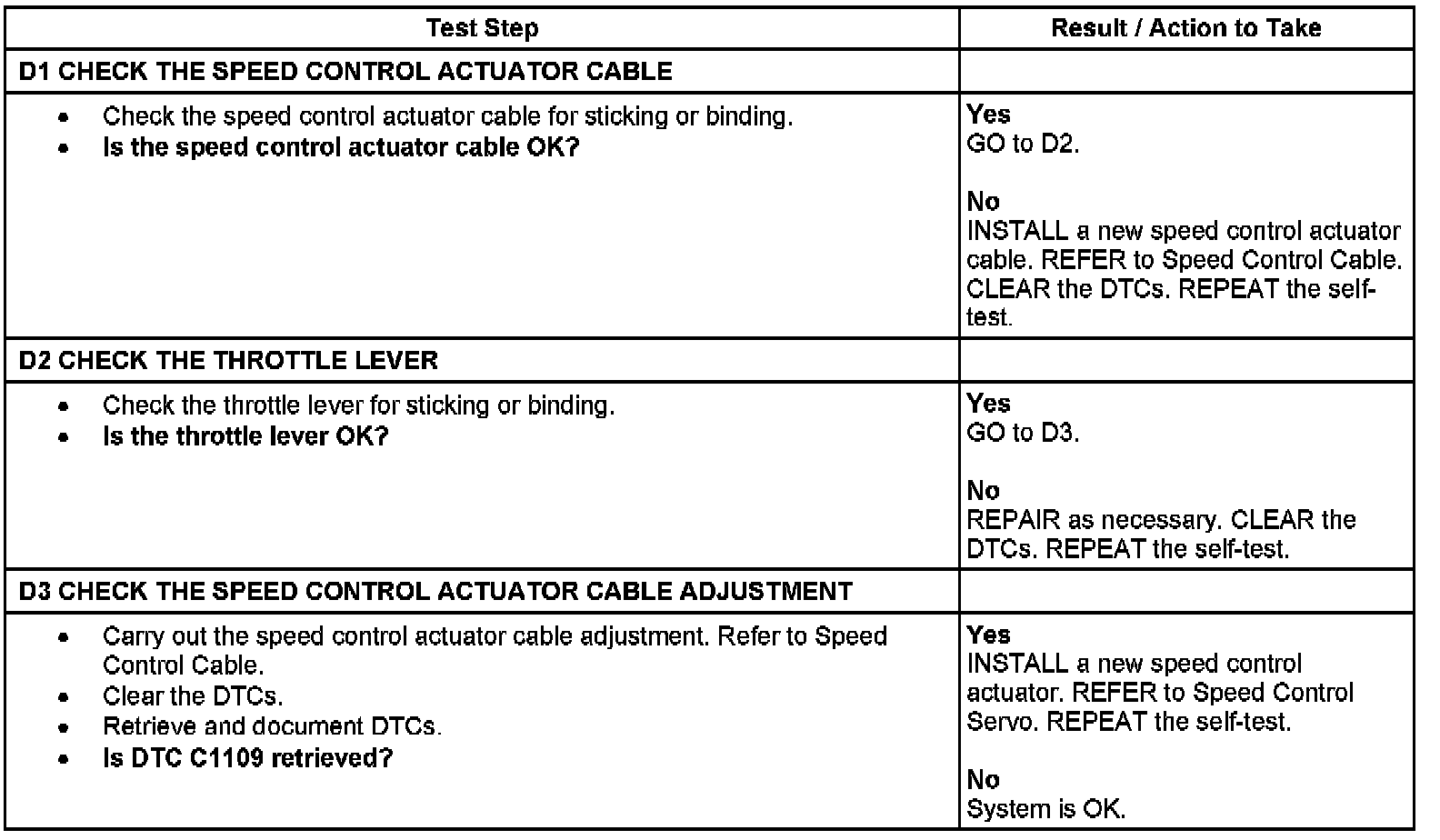 PINPOINT TEST D: DTC 1109 - THROTTLE POSITION DID NOT RETURN TO IDLE AFTER SELF-TEST