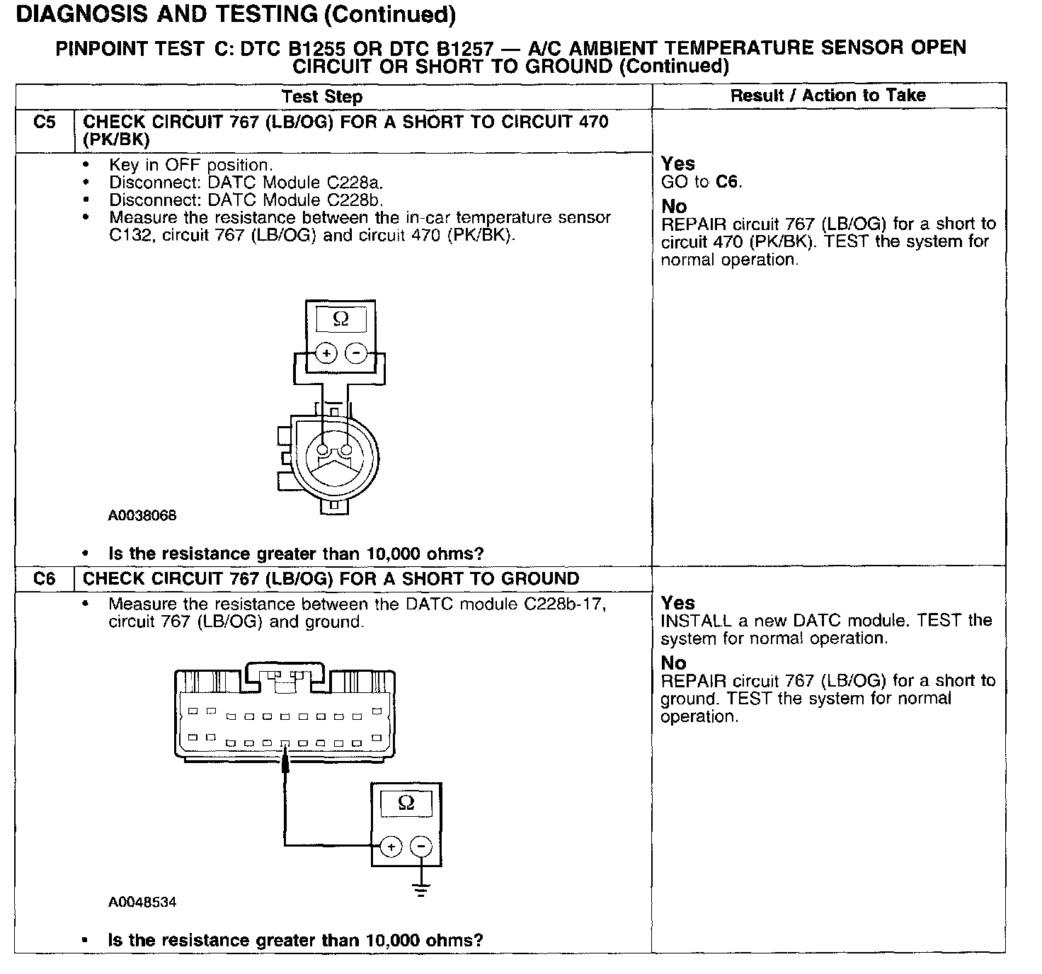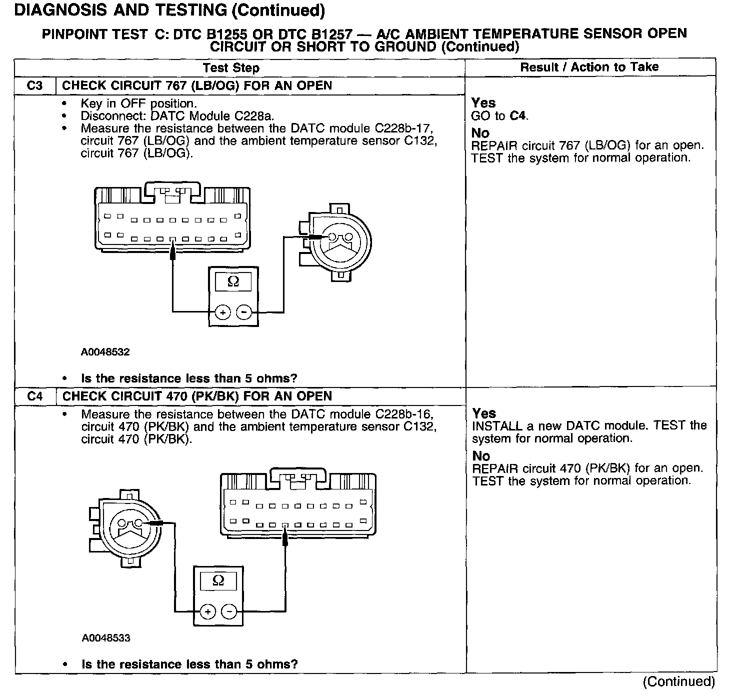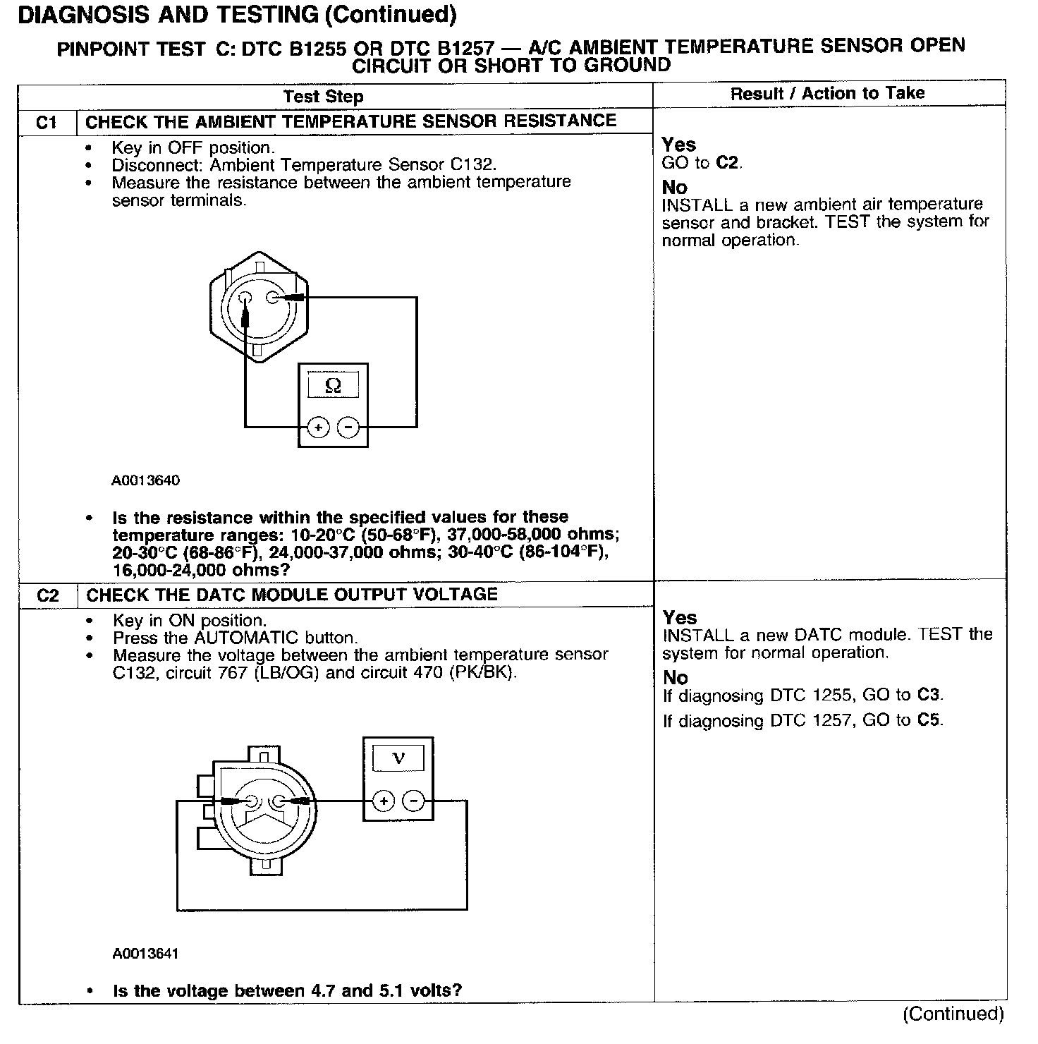 PINPOINT TEST C: DTC B1255 OR DTC B1257 - A/C AMBIENT TEMPERATURE SENSOR OPEN CIRCUIT OR SHORT TO GROUND