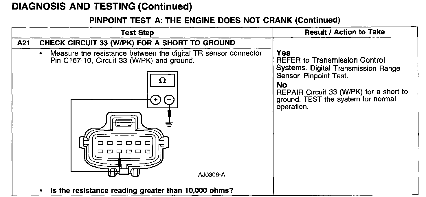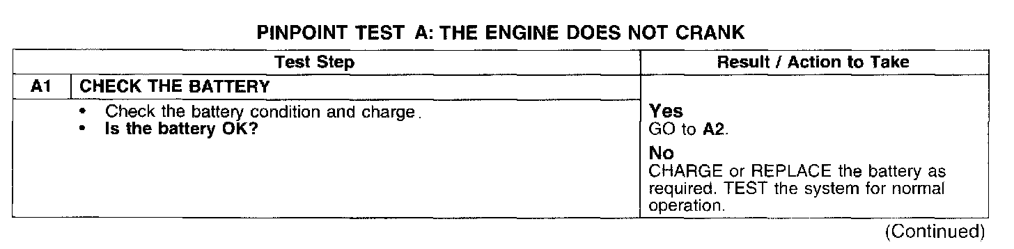 PINPOINT TEST A: THE ENGINE DOES NOT CRANK