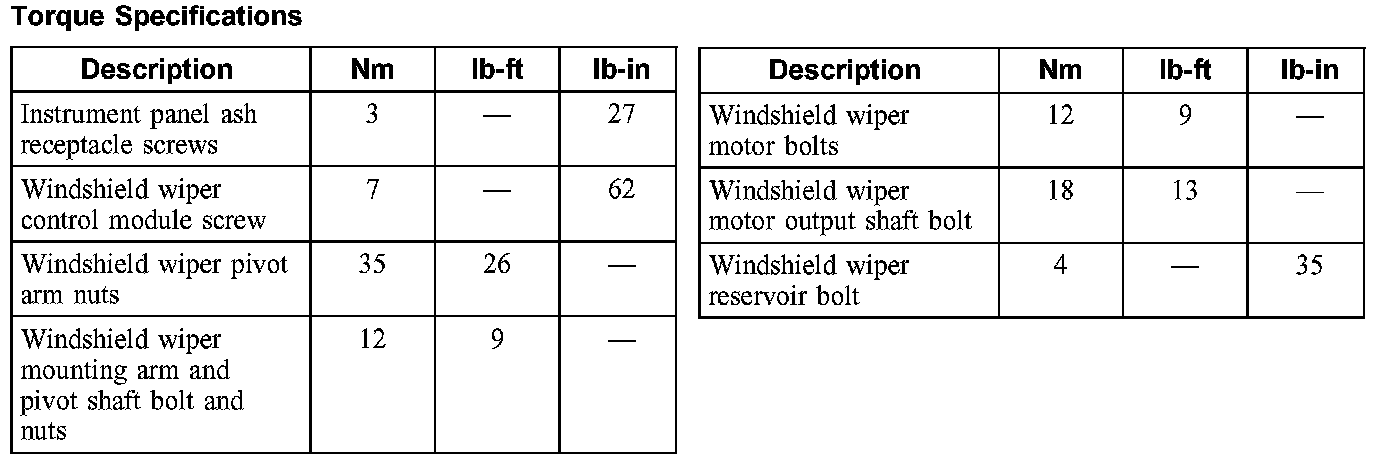 Wiper and Washer Systems: Specifications
