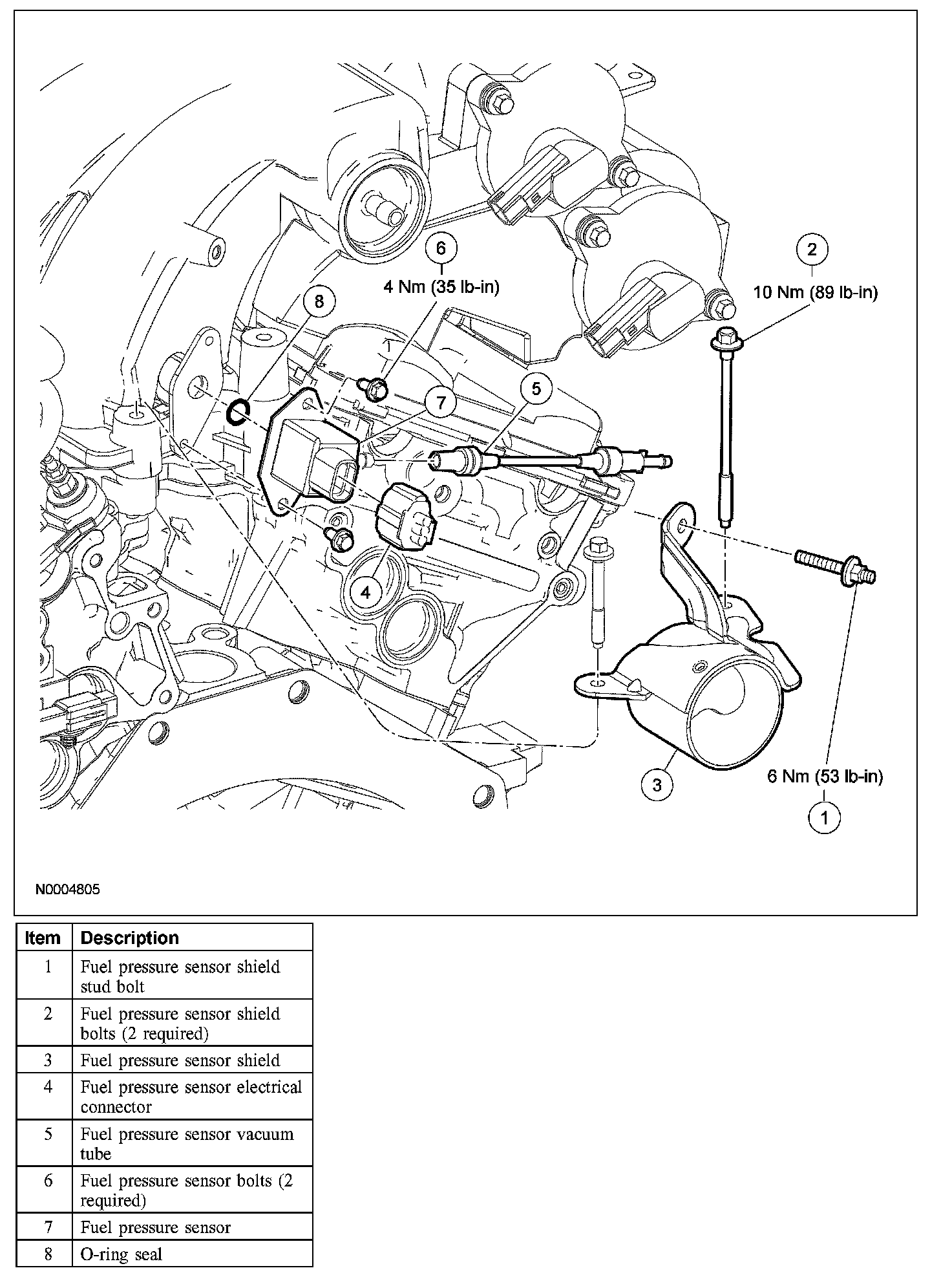 5. Disconnect the fuel pressure sensor electrical connector and vacuum tube.