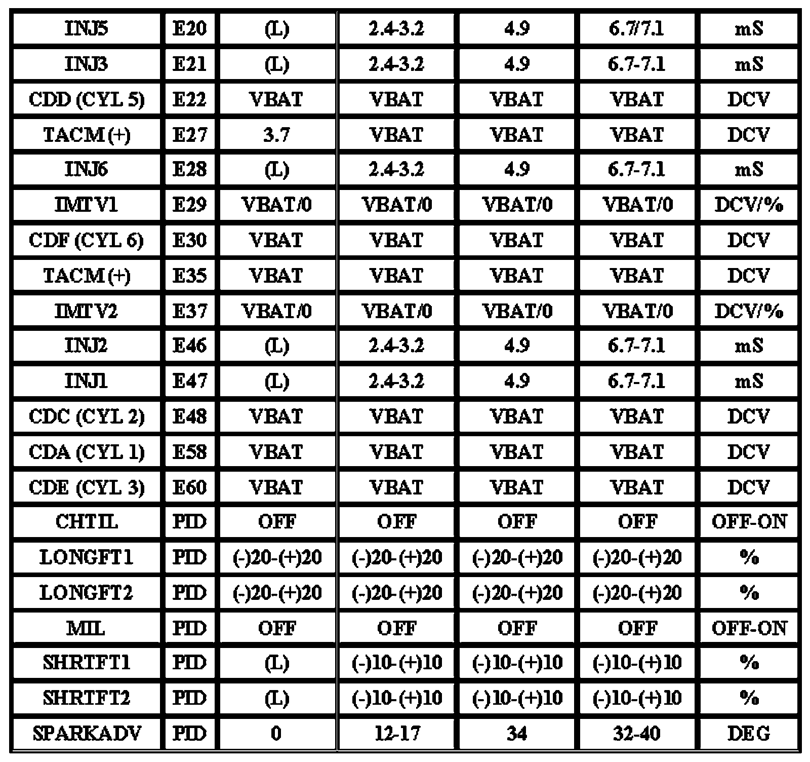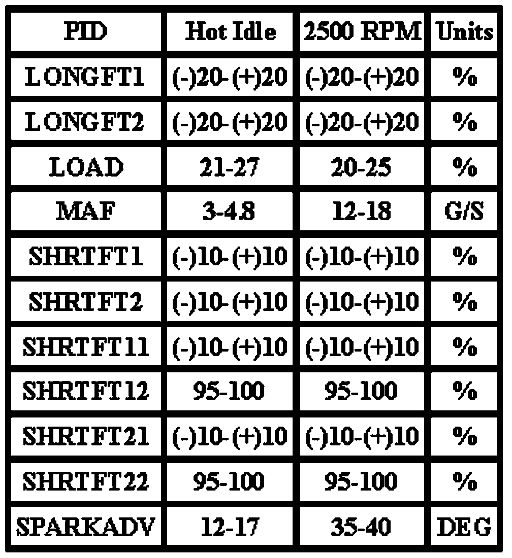 Note: All generic OBD readings under no load (PARK or NEUTRAL).