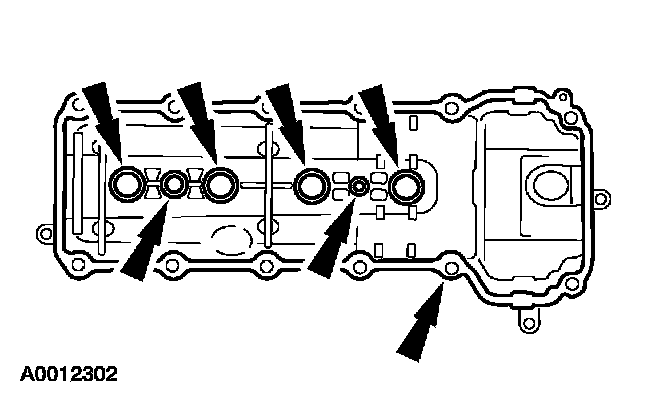 NOTE: If the valve covers are not secured within 4 minutes of sealant application the sealant must be removed and the sealing area cleaned with metal surface cleaner. Allow to dry until there is no sign of wetness, or 4 minutes, whichever is longer. Failure to follow this procedure can cause future oil leakage.
