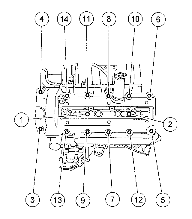 ^ Tighten the 7 bolts and the 3 studs in the sequence shown to 20 Nm (15 ft. lbs.).
