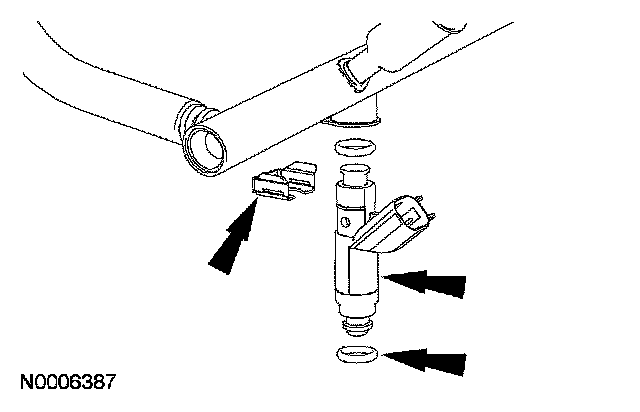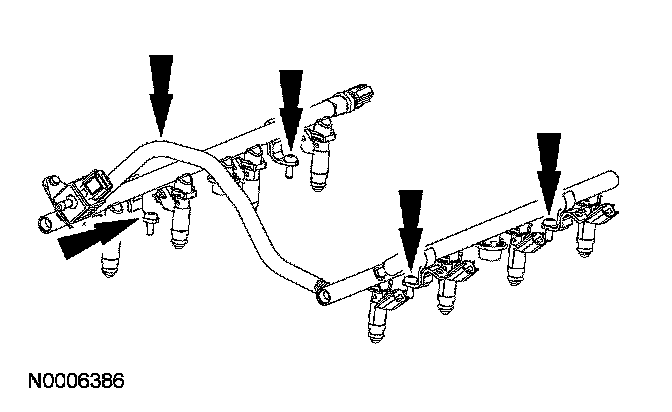 ^ Install the fuel injectors and clips onto the fuel rail.