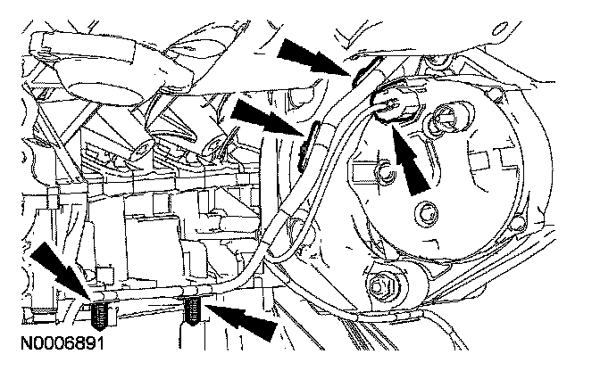 Connect the engine wiring harness retainers to the engine appearance cover support brackets.