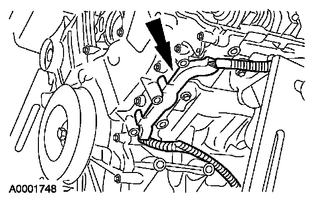 102. Set the ignition coil harness in the bead of silicone sealer and apply enough additional sealer to surround the wire harness and notch.