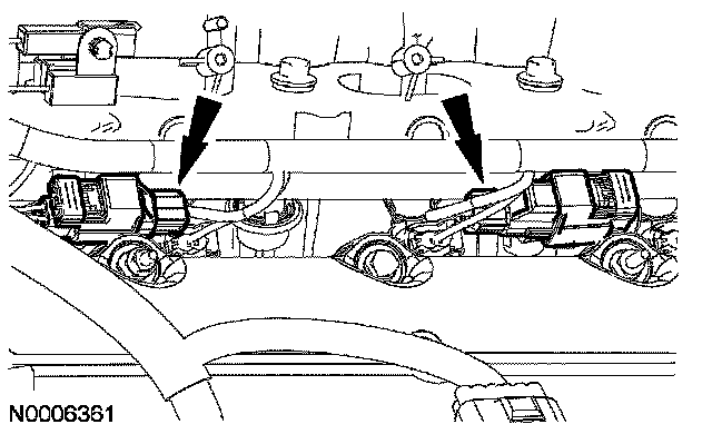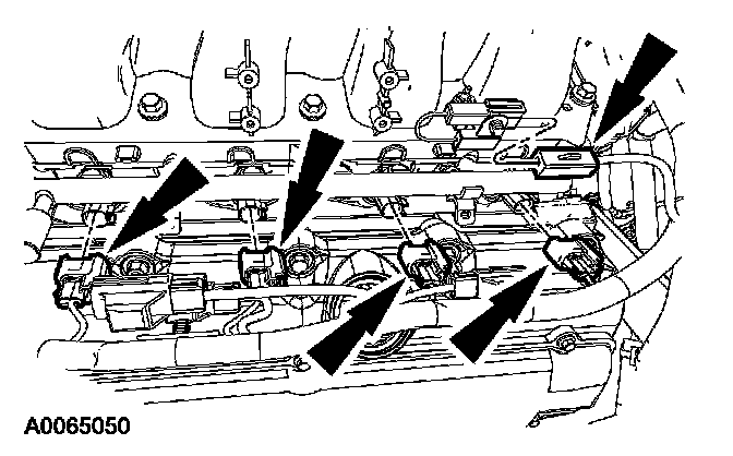 Connect the 8 fuel injectors and the 2 radio interference capacitor electrical connectors
