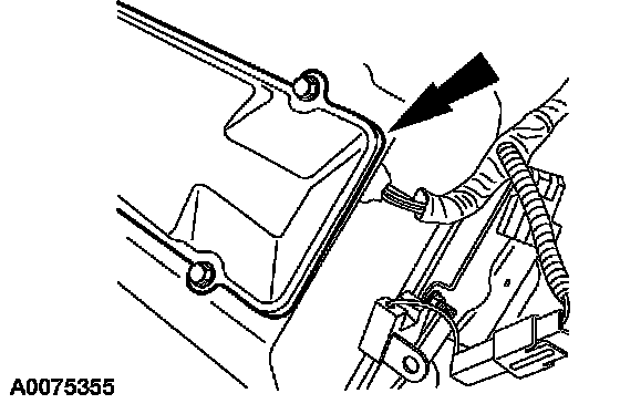 Lift up the wire harness and apply a 12.7 mm (0.5 inch) bead of silicone sealer in the notch of the valve cover.