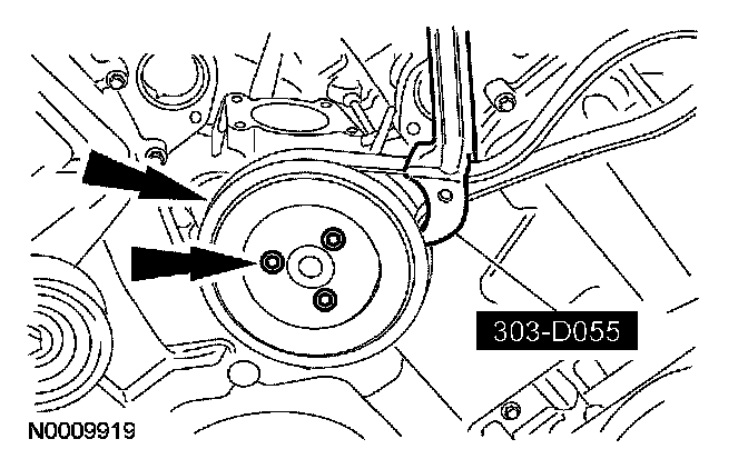 112. Using the special tool, install the coolant pump pulley and 3 bolts.