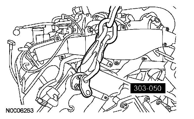 119. Install the LH engine mount bracket, stud bolt and 3 bolts.