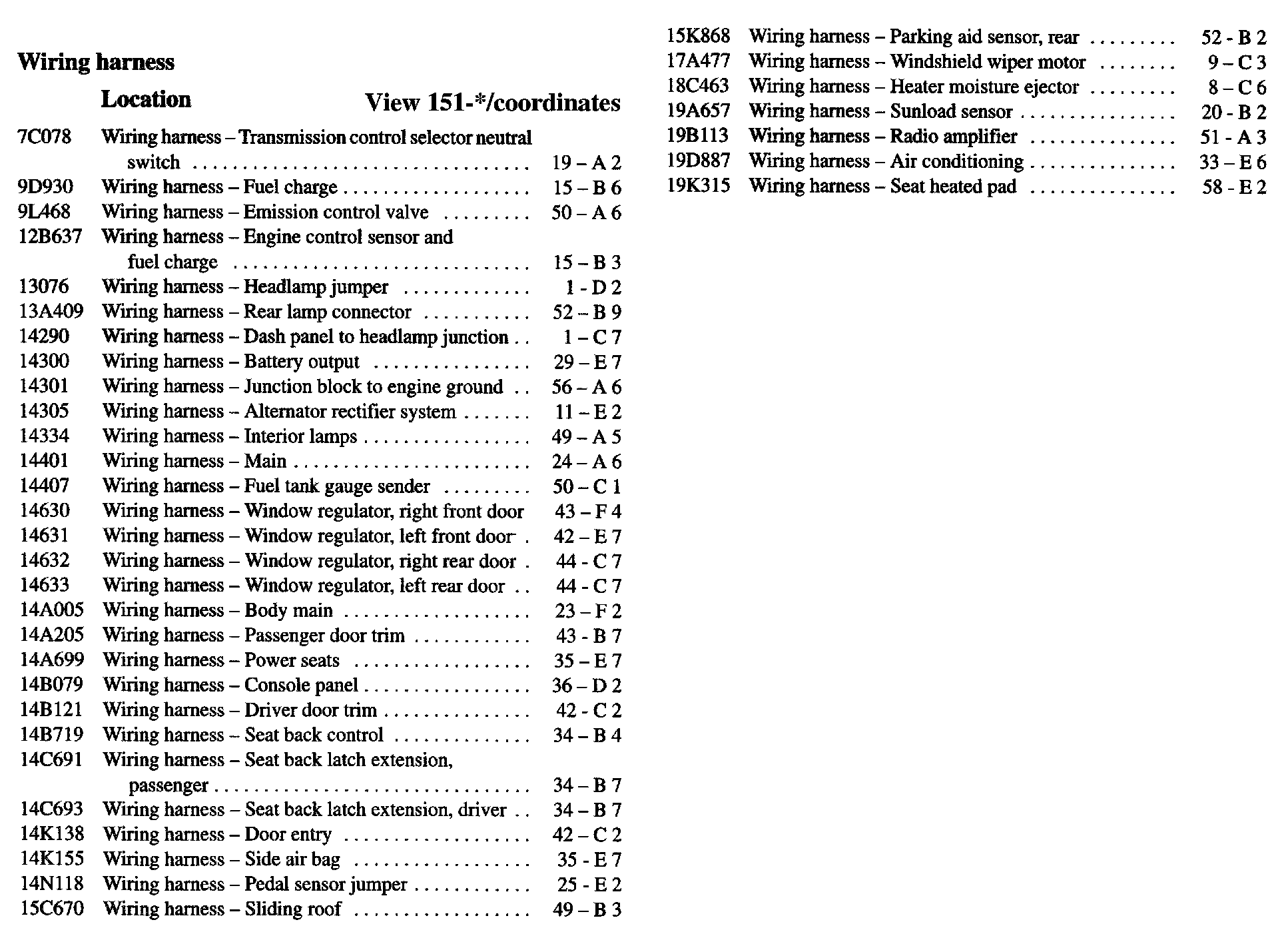 Harness Location Index