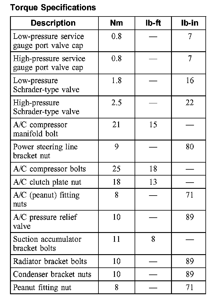 Torque Specifications: