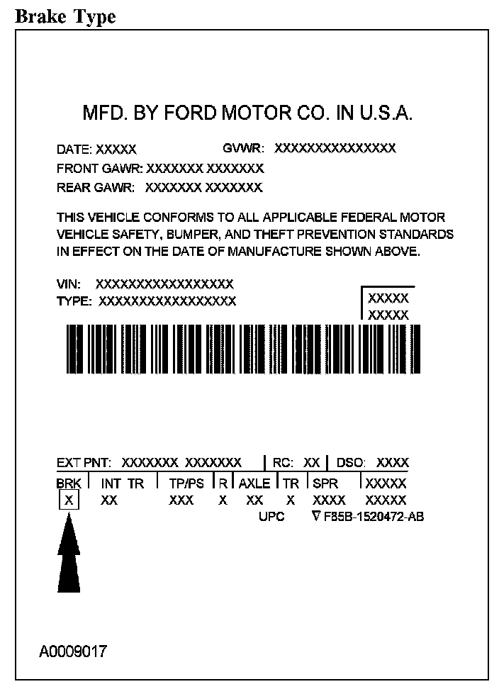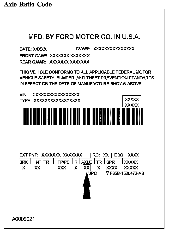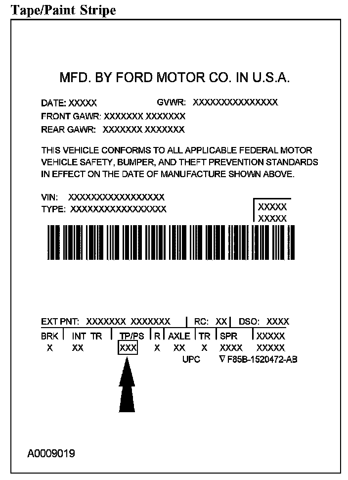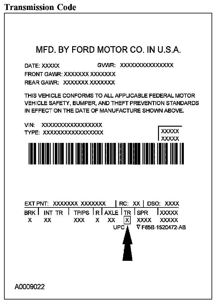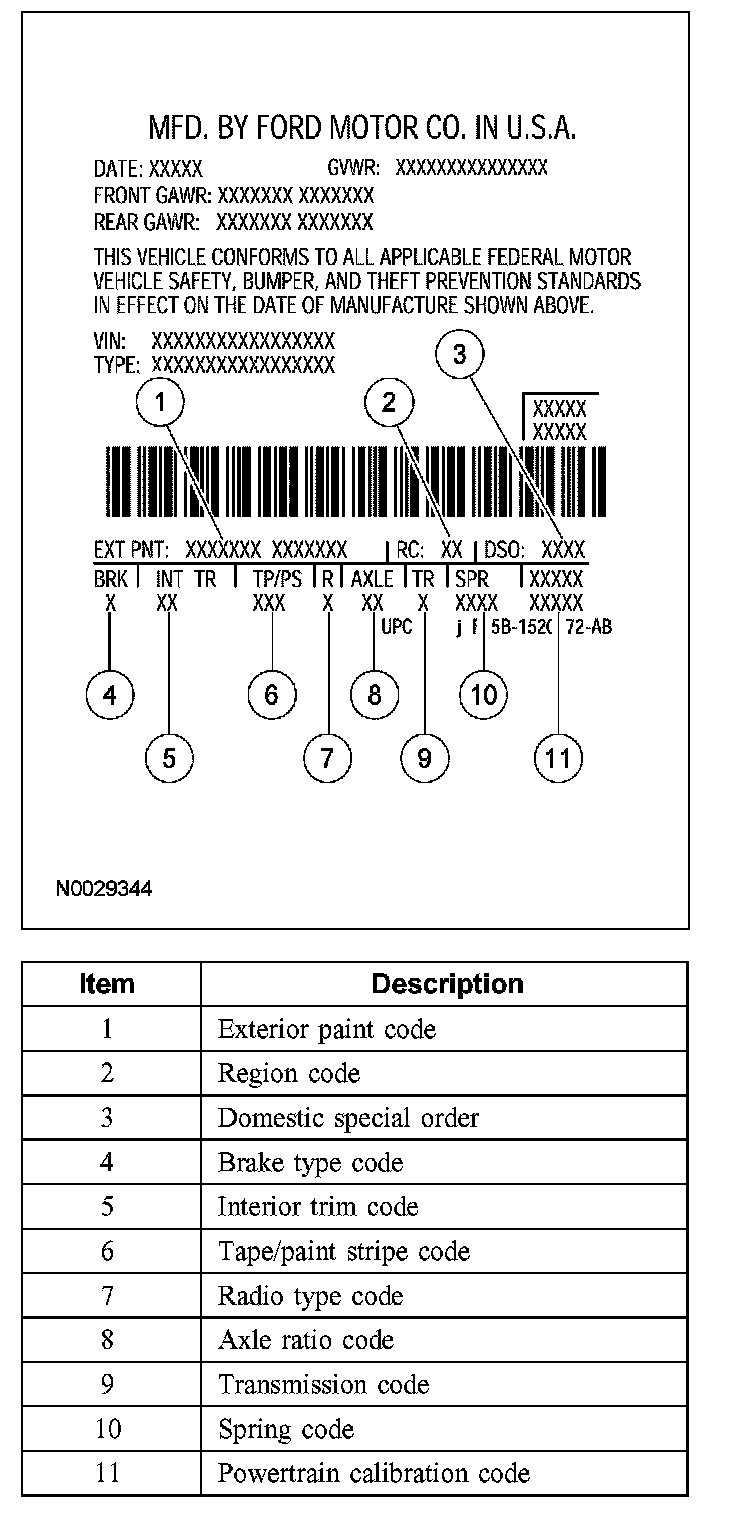 Powertrain calibration information is printed in the lower right corner of the VC label. Only base calibration information is printed. Revision levels will not appear, however, they can be found in On Line Automotive Service Information System (OASIS). For the current model year, Ford Motor Company is using 3 different protocols which describe powertrain base calibration. These protocols are designed to provide worldwide standardization for vehicle calibration. If the electronic calibration strategy was introduced in 1998 and carried into the current model year, Protocol 1 will be used. Refer to Protocol 1. If the electronic calibration strategy was introduced in 1999 and carried into the current model year, Protocol 2 will be used. Refer to Protocol 2. For electronic calibration strategy introduced in 2000 and beyond, Protocol 3 will be used. Refer to Protocol 3.