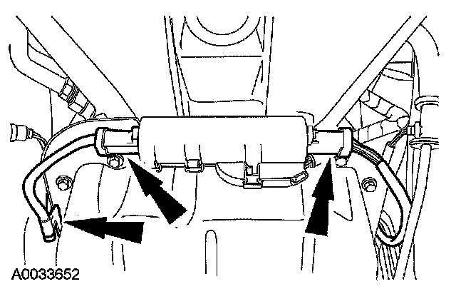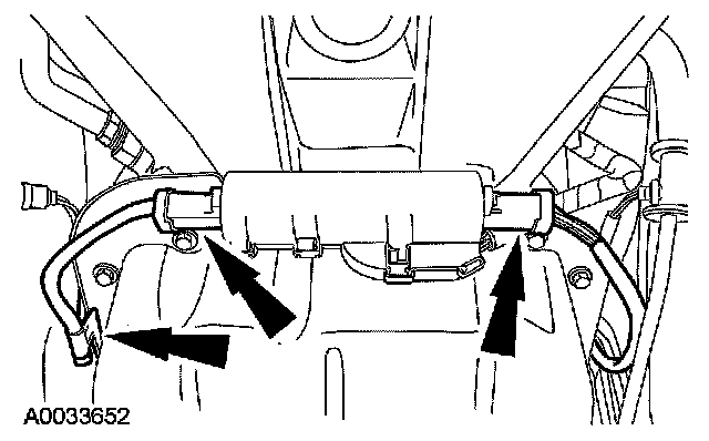 3. Disconnect the heated oxygen sensor (HO2S) connectors and retaining clip from the RH pan rail and then position the connectors aside.