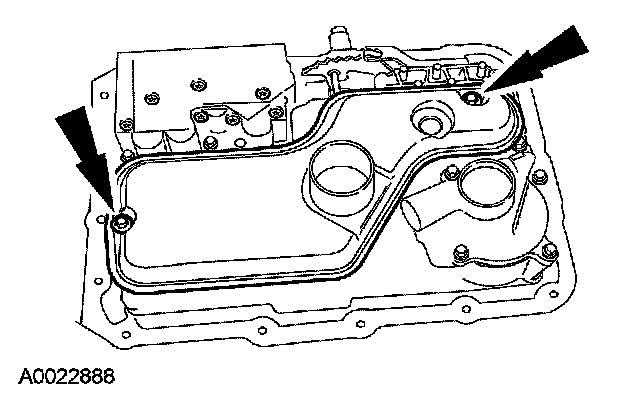Remove the transmission fluid pan screws, gasket and fluid pan.