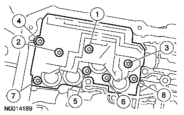 Install the solenoid body. Tighten the screws in the sequence shown.
