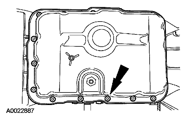5. NOTE: The transmission fluid pan gasket is reusable; clean and inspect for damage. If not damaged, the gasket should be reused.