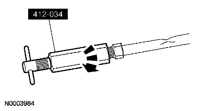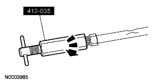 4. If the evaporator core orifice is intact, engage the special tool. Hold the T-handle stationary while rotating the tool body to remove the evaporator core orifice.