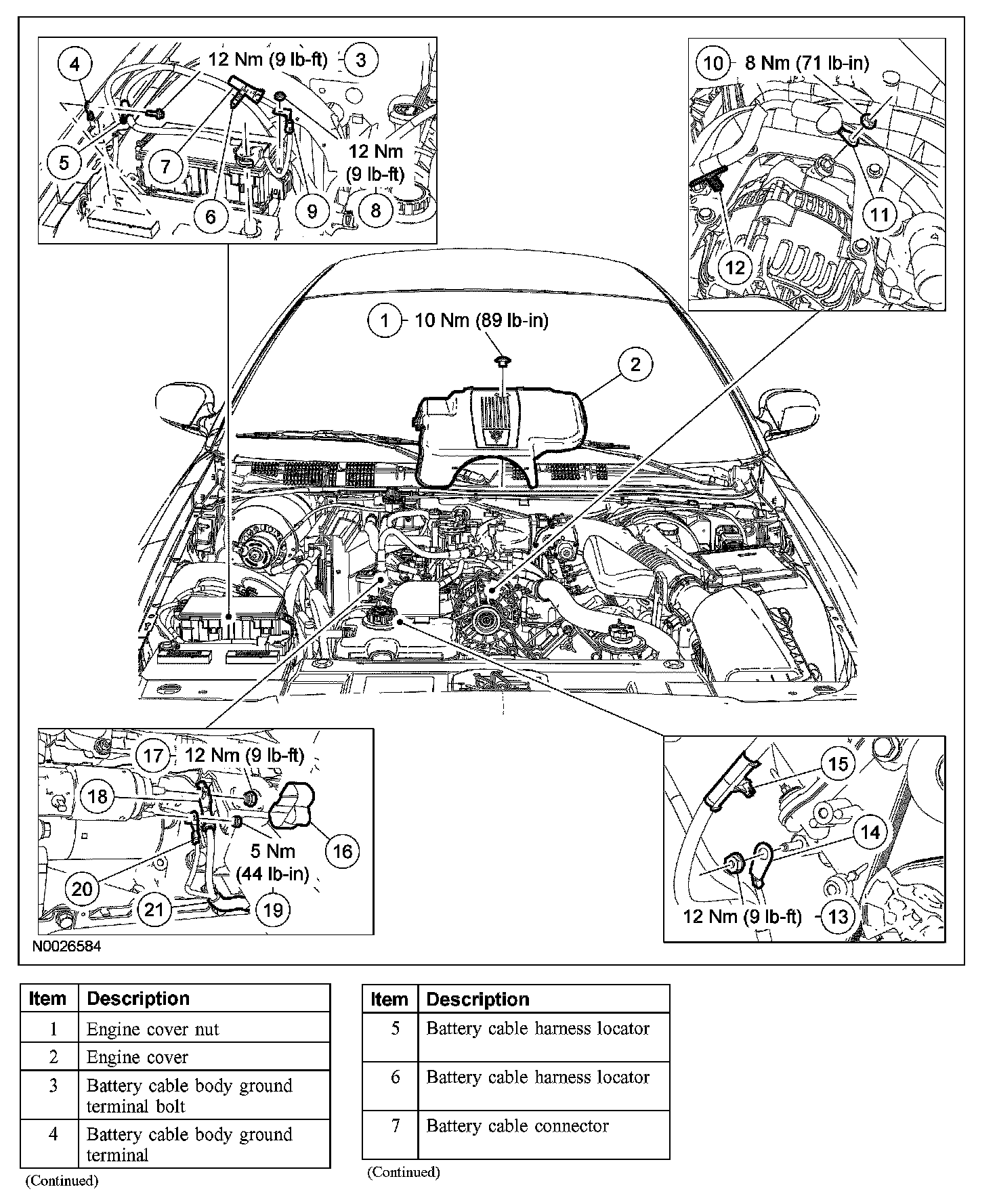 9. Remove the nut and position the battery cable engine ground terminal aside.
