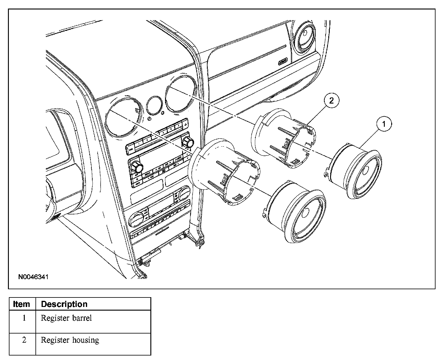 1. CAUTION: To avoid damage to the instrument panel registers, rotate either left or right and pull straight out. Do not wiggle the register from side to side to free it.