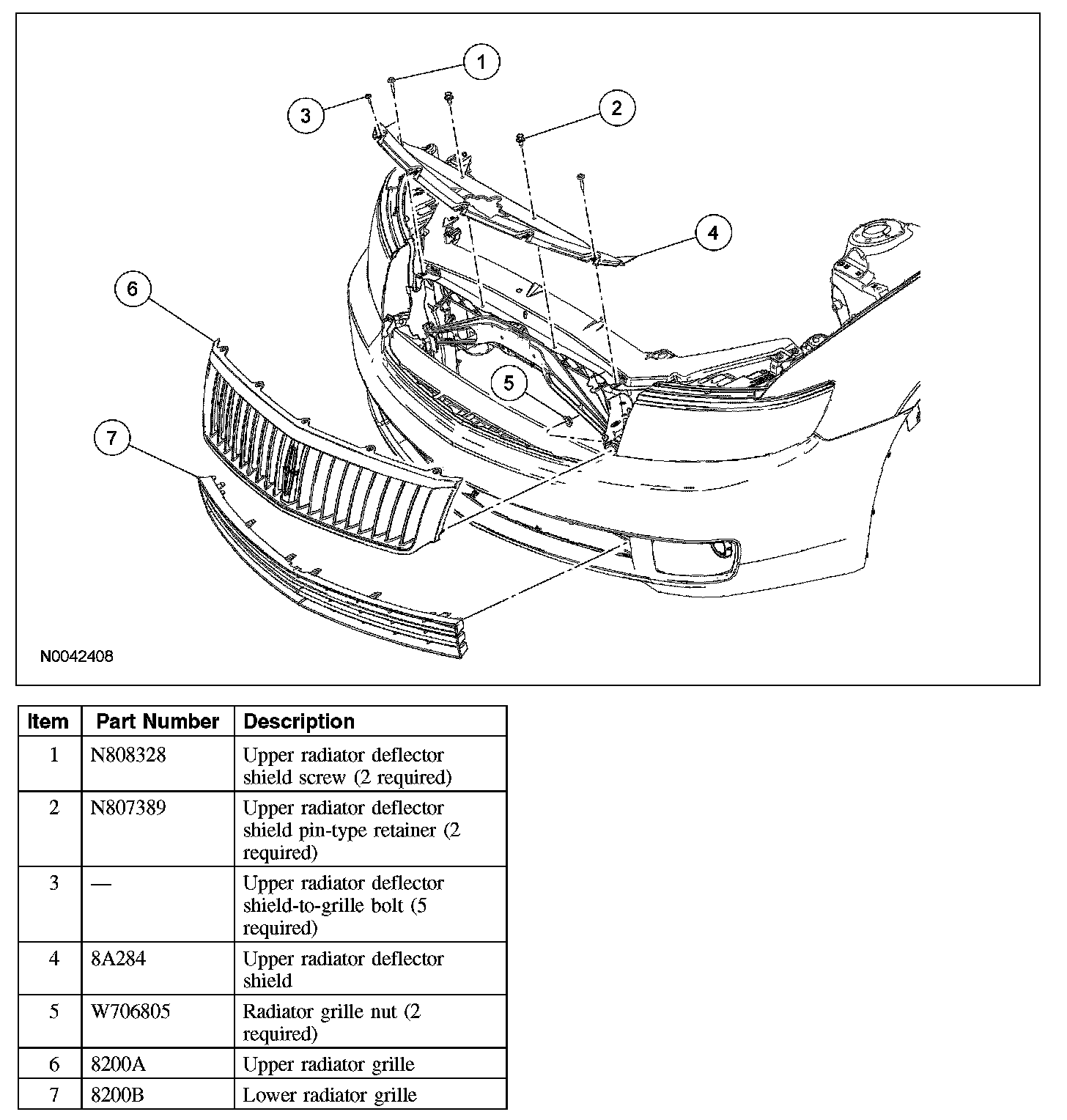 6. Remove the upper radiator grille.
