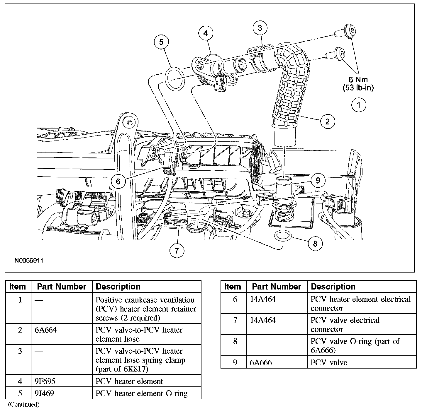 - Upon installation, make sure the PCV valve heater element electrical connector is in the correct position to allow the wiring harness to be connected.
