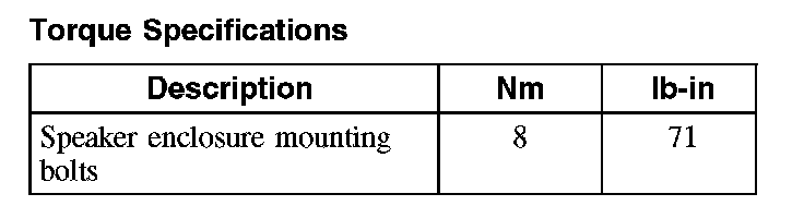 Torque Specifications:
