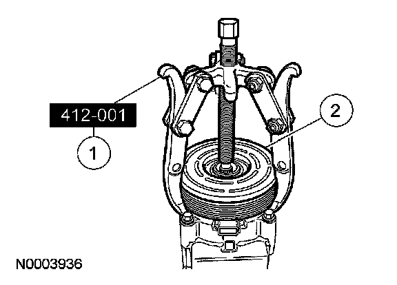 4 Use special tool 412-001 to install the A/C clutch field coil.