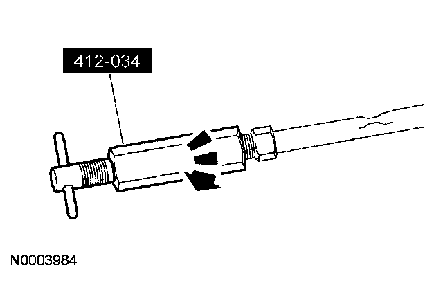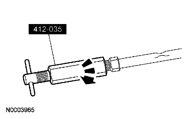 4. If the evaporator core orifice is intact, engage the special tool. Hold the T-handle stationary while rotating the tool body to remove the evaporator core orifice.