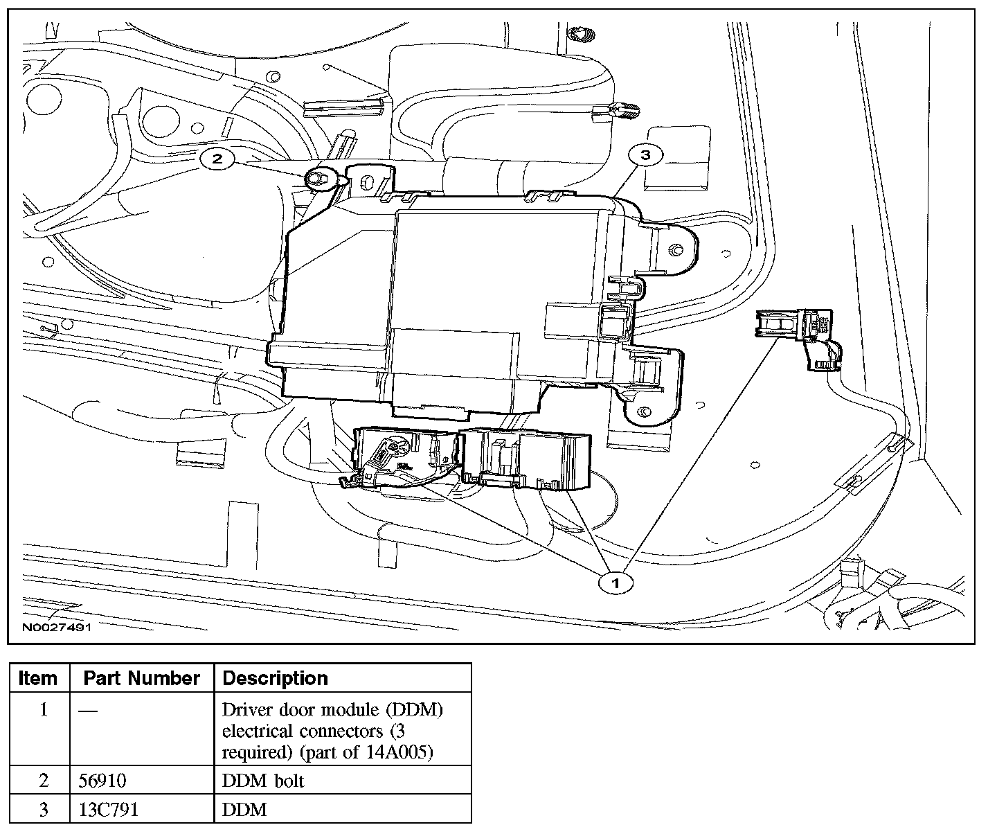 - Prior to the replacement of the driver door module (DDM), it is necessary to upload the module configuration information to the appropriate scan tool. This information must be downloaded into the new DDM after installation.