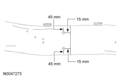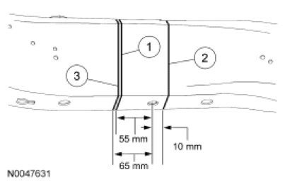 3. Cut line 3 is 65 mm (2.55 in) in front of the center of the No. 2 crossmember locating hole.