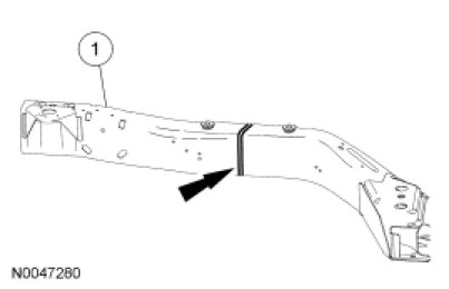NOTICE: The following steps provide the procedure for replacing the front frame rails. The frame is designed with energy absorbing convolutions in the front frame rails to absorb crash energy. This convolute section of the frame MUST NOT be straightened if the convoluted surfaces show evidence of collapse or buckling. Additionally, if any evidence of damage exists behind the No. 2 crossmember (buckling, cracking), then the entire frame must be replaced.