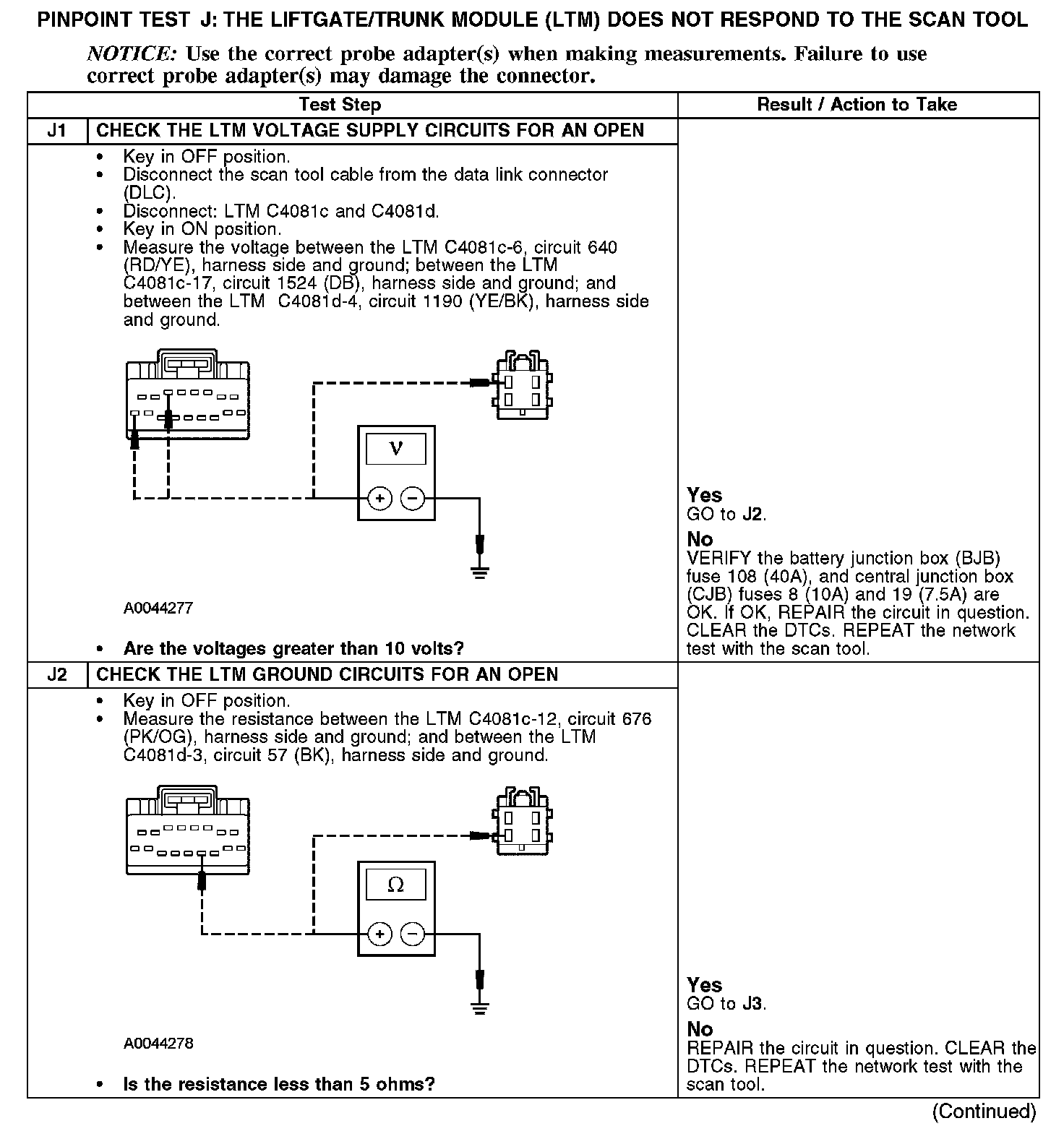 PINPOINT TEST J: THE LIFTGATE/TRUNK MODULE (LTM) DOES NOT RESPOND TO THE SCAN TOOL