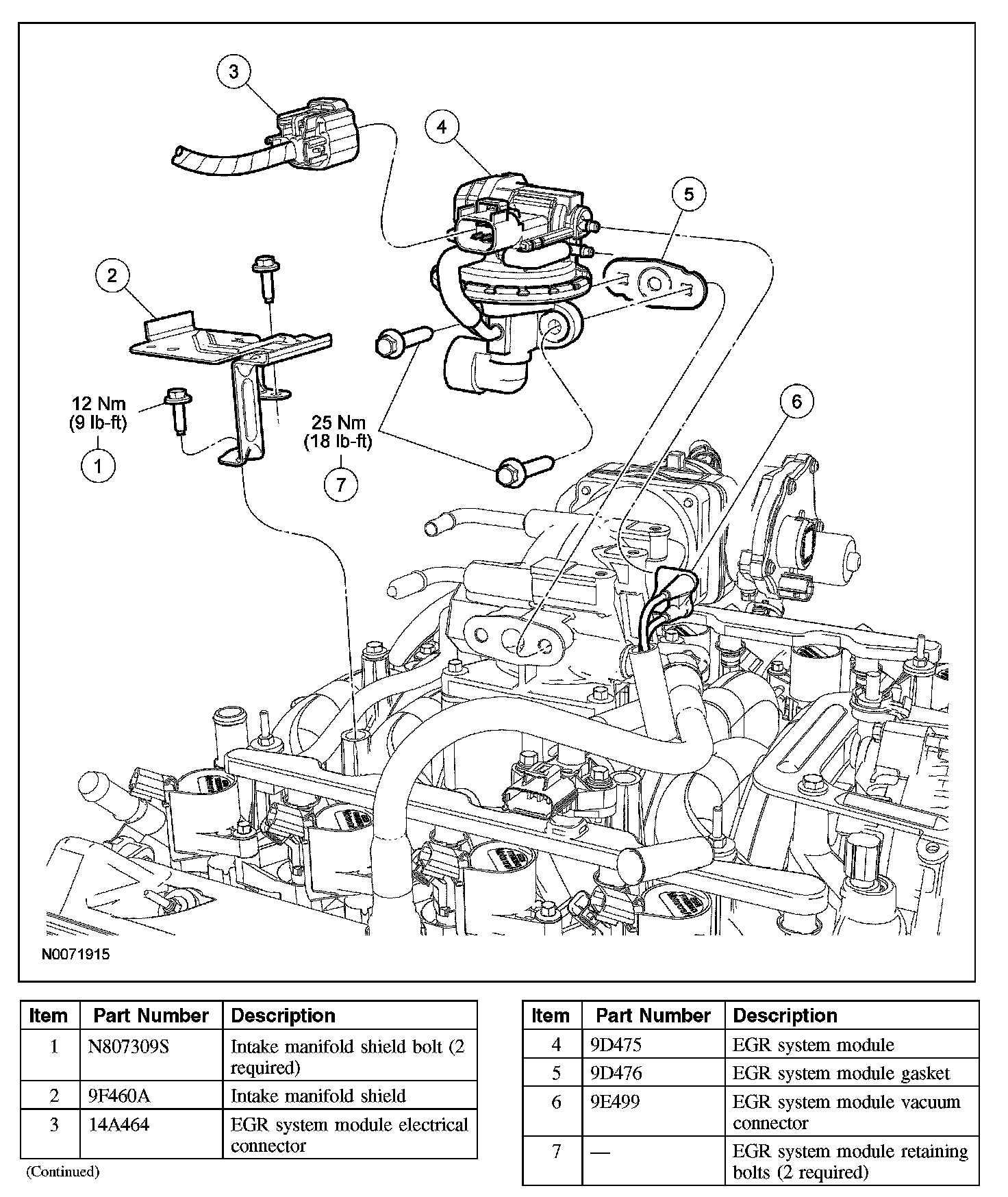 - Install a new EGR system module gasket with the side that has the raised circle facing the intake manifold.