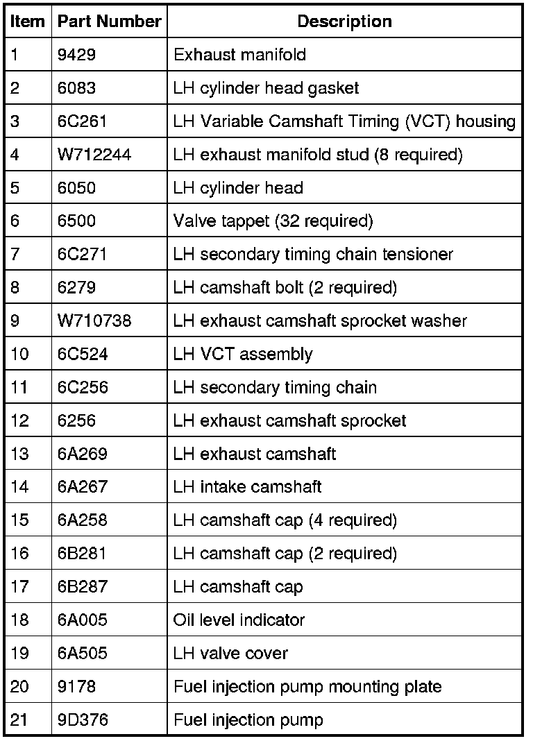 NOTE: On early build engines, the timing chain rides on the inner side of the RH timing chain guide. Late build engines are equipped with a different design RH timing chain guide that requires the timing chain to ride on the outer side of the RH timing chain guide. For service, all replacement RH timing chain guides will be the late build design.