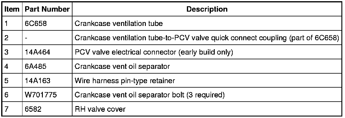 5. Remove the crankcase vent oil separator from the RH valve cover.
