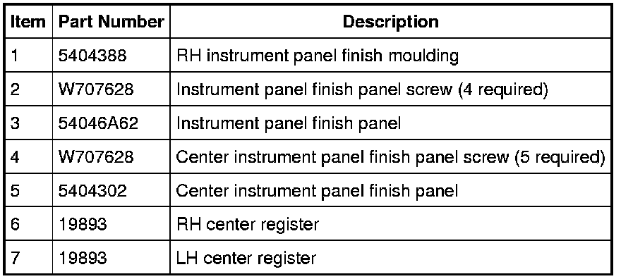 5. Remove the 5 center instrument panel finish panel screws and the trim panel.