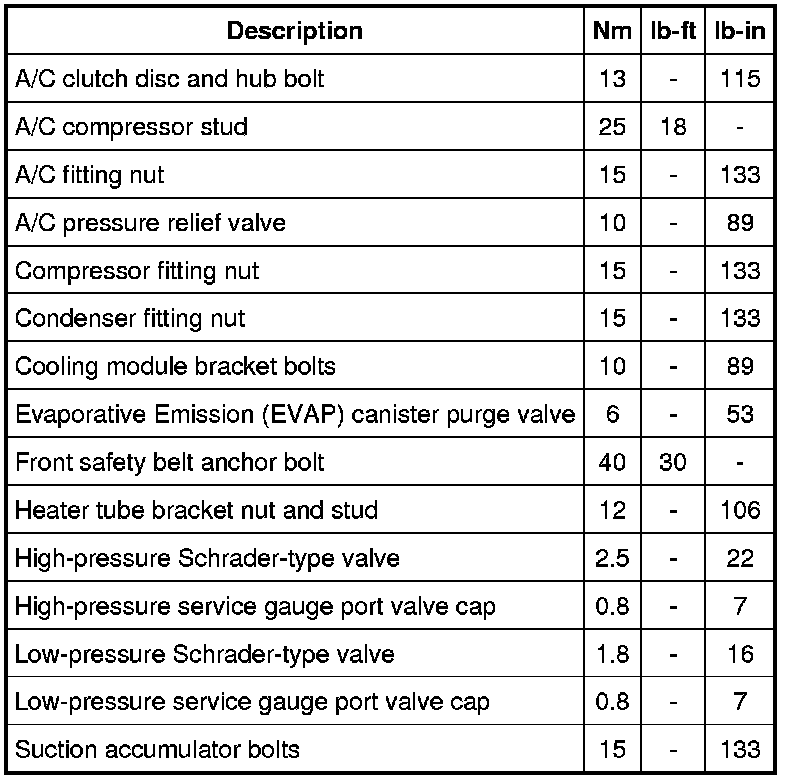 Torque Specifications