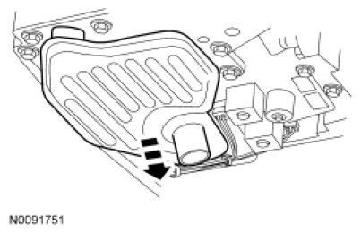 NOTE: If transmission is being serviced for a contamination-related failure, use a new transmission fluid filter and seal. The transmission fluid filter may be reused if no excessive contamination is present.