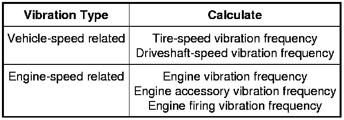 After carrying out the road test as described, the vibration was determined to be either vehicle-speed related or engine-speed related. That determination will identify the vibration frequency calculations that should be done.