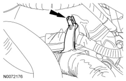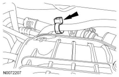 70. Attach the EVAP tube pin-type retainer to the upper intake manifold.