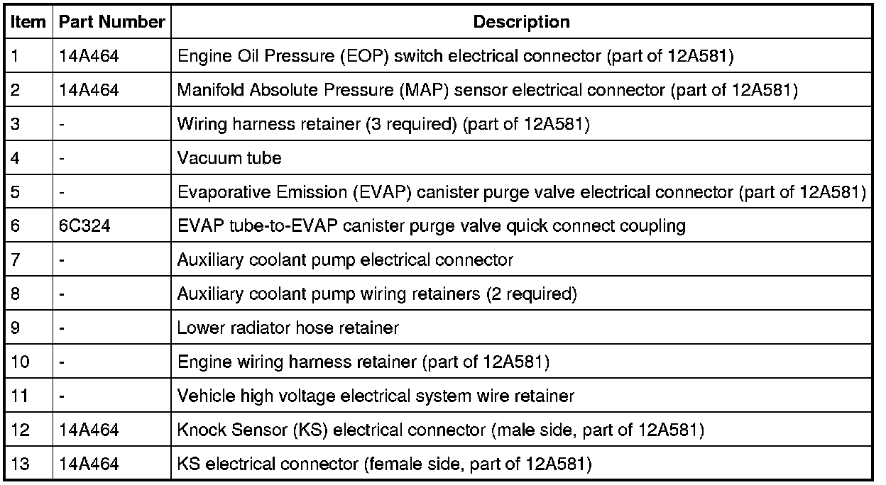 13. Detach the engine wiring harness retainer and the vehicle high voltage electrical system wire retainer from the intake manifold.