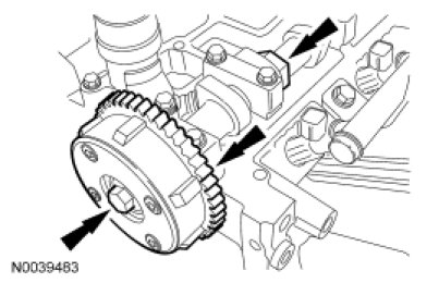 1. Install the camshaft sprockets and the bolts. Do not tighten the bolts at this time.