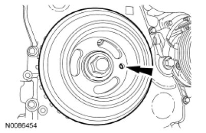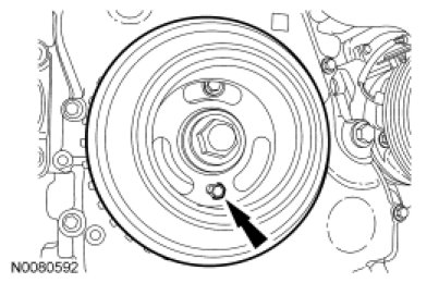 4. Turn the crankshaft clockwise until the hole in the crankshaft pulley is in the 3 o'clock position.