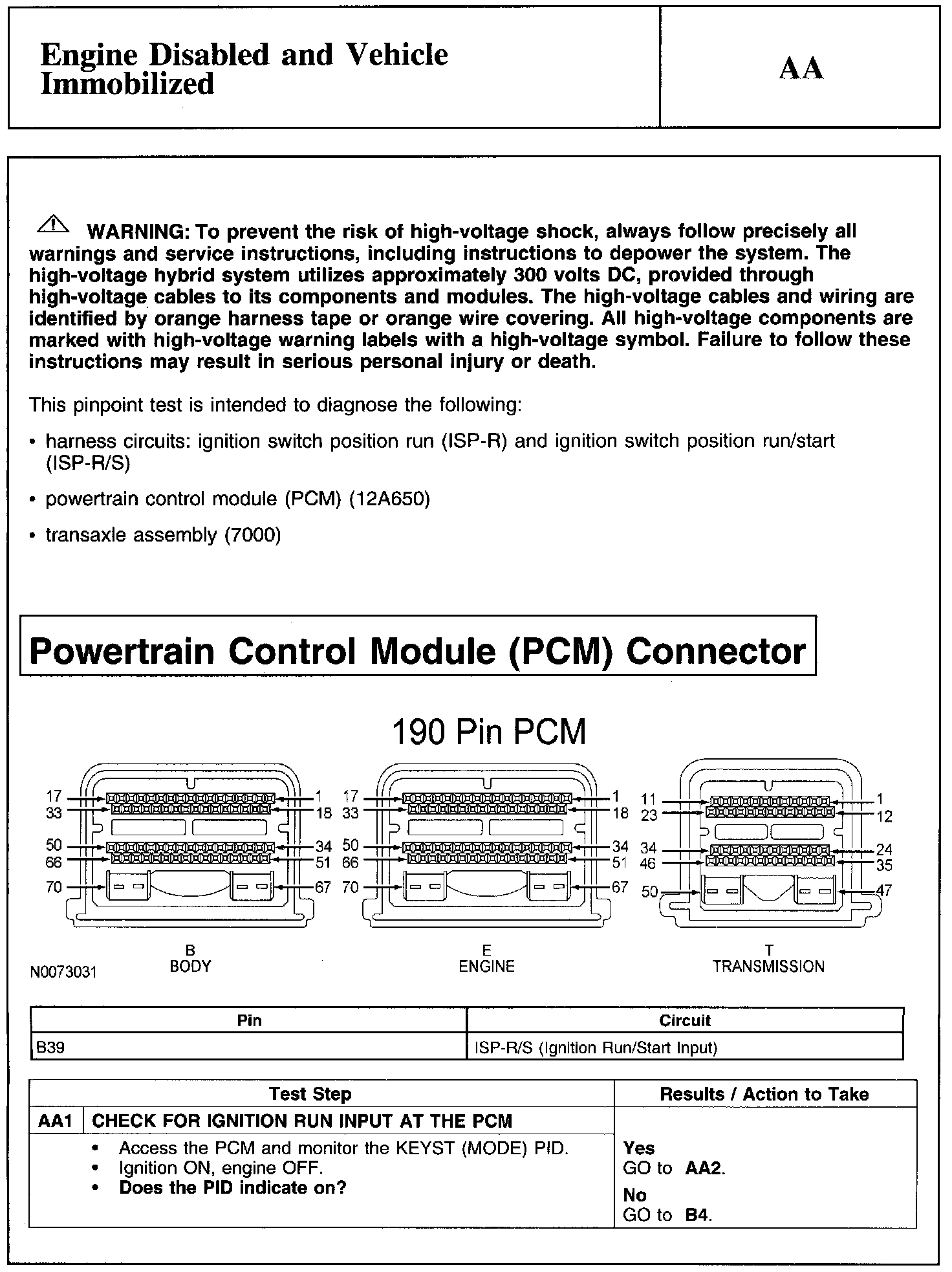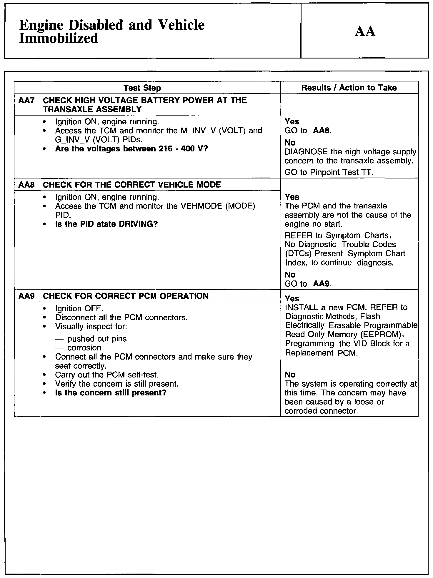 PINPOINT TEST AA: ENGINE DISABLED AND VEHICLE IMMOBILIZED